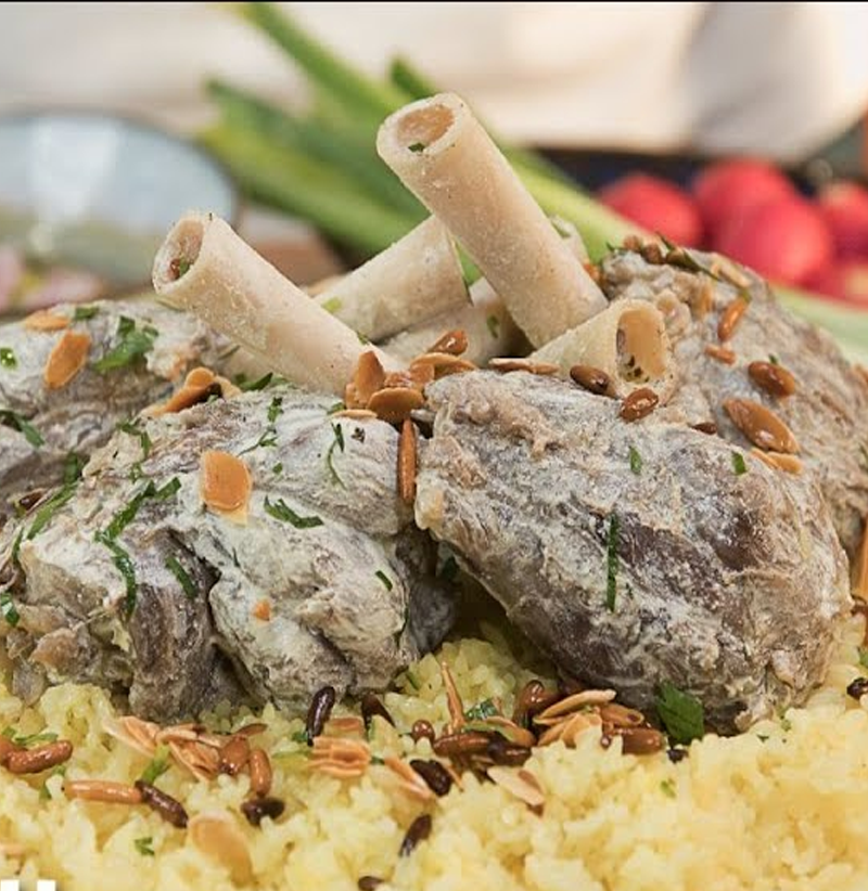 主な食材: 羊肉(または鶏肉)を、羊や山羊の乳を発酵・乾燥させて作る「ジャミード」で煮込みます。 提供方法: 大皿に炊いた米や薄焼きパンを敷き、その上に調理した肉を乗せ、上からジャミードのソースをかけます。 トッピング: アーモンドや松の実、刻んだパセリなどがトッピングされます。 食べ方: 伝統的には、大皿を囲んで皆で手で食べるスタイルです。近年は立食や座って食べる形式も広がっています。 文化的背景: ベドウィン文化に由来する料理であり、遊牧民の生活を支えてきた家畜(羊や山羊)が重要な役割を担っています。